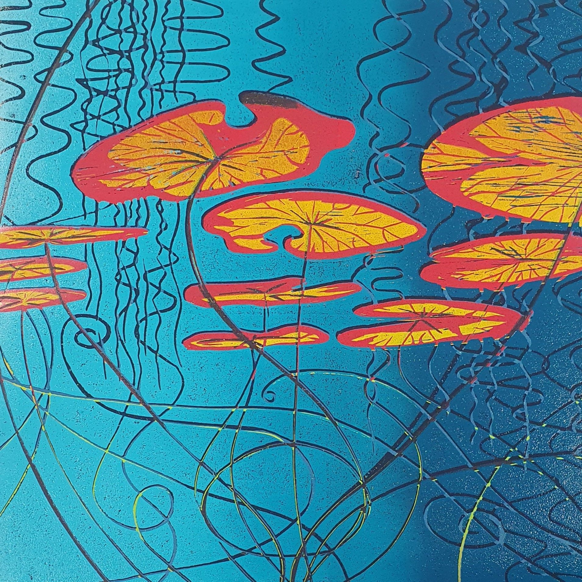 These hand cut lino prints are limited edition reduction lino-prints and are also now available as high quality giclée prints on fine art paper and as reproduction digital prints.